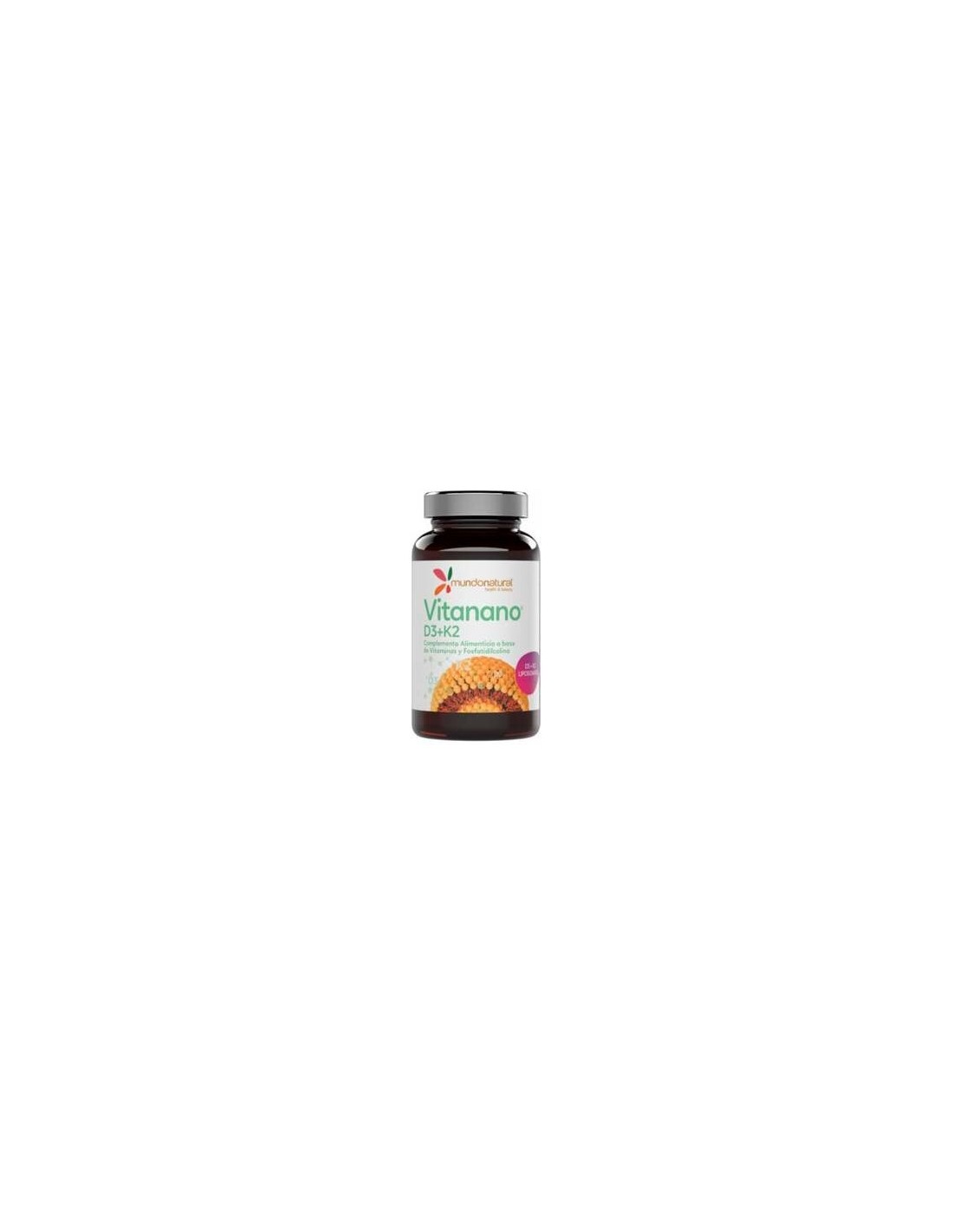 Complemento a base de Vitaminas D3 (Colecalciferol) y K2 (Menaquinona-7) liposomada y fosfatidilcolina. Mejor absorción y mayor biodisponibilidad y contribuyen al mantenimiento de los huesos en condiciones normales. Indicado para complementar una dieta variada y equilibrada. Contiene soja y productos derivados de la soja.