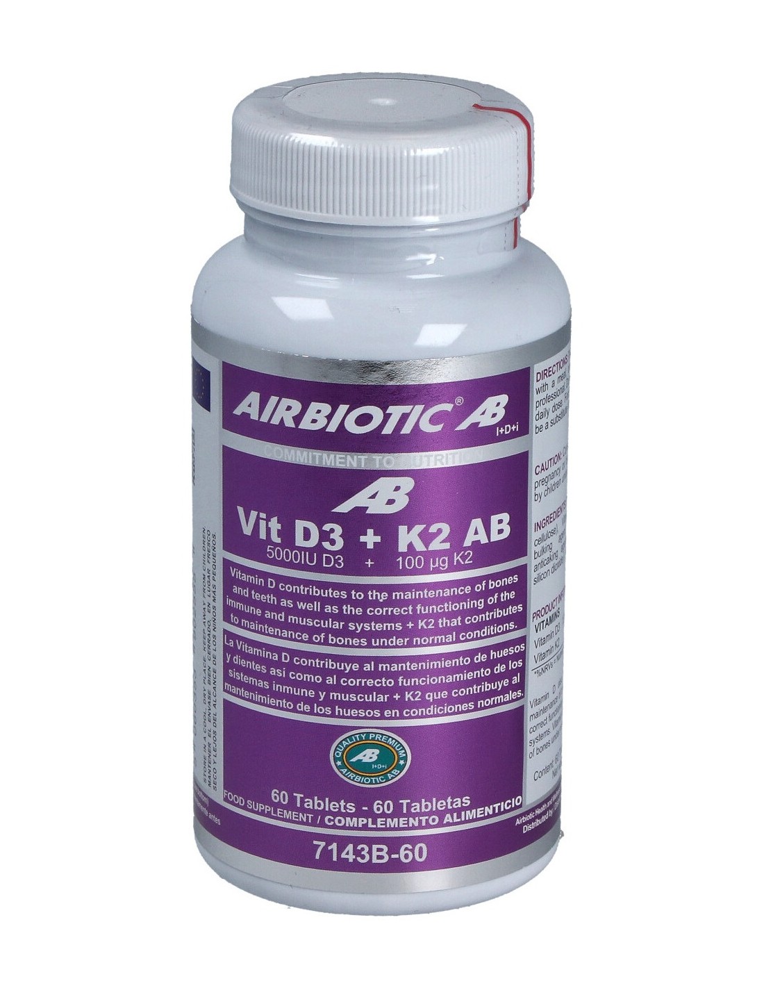 Complemento de vitaminas D3 y K2. Están indicadas para la fijación y absorción del calcio. Mejora y fortalece la salud ósea y la de los dientes. Útiles para la prevención de enfermedades relacionadas, como la osteoporosis o la artrosis. Además, tiene son esenciales para buen funcionamiento del sistema nervioso central, el sistema circulatorio para y la salud cardíaca.