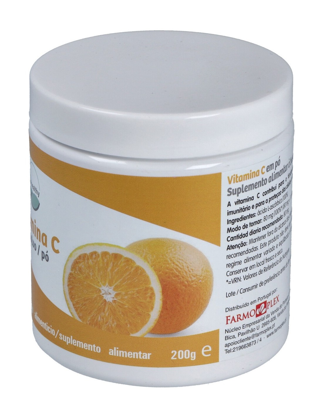 Complemento alimenticio a base de vitamina C (Ácido l-ascórbico) 100%. El producto presenta envase de 200g de contenido neto. El producto facilita la suplementación del organismo con vitamina, la cual contribuye a la formación normal de colágeno para el metabolismo energético normal. Funcionamiento normal de los vasos sanguíneos, huesos, cartílagos, encías, dientes y piel, e inclusive al funcionamiento normal del sistema nervioso y a la función psicológica normal.