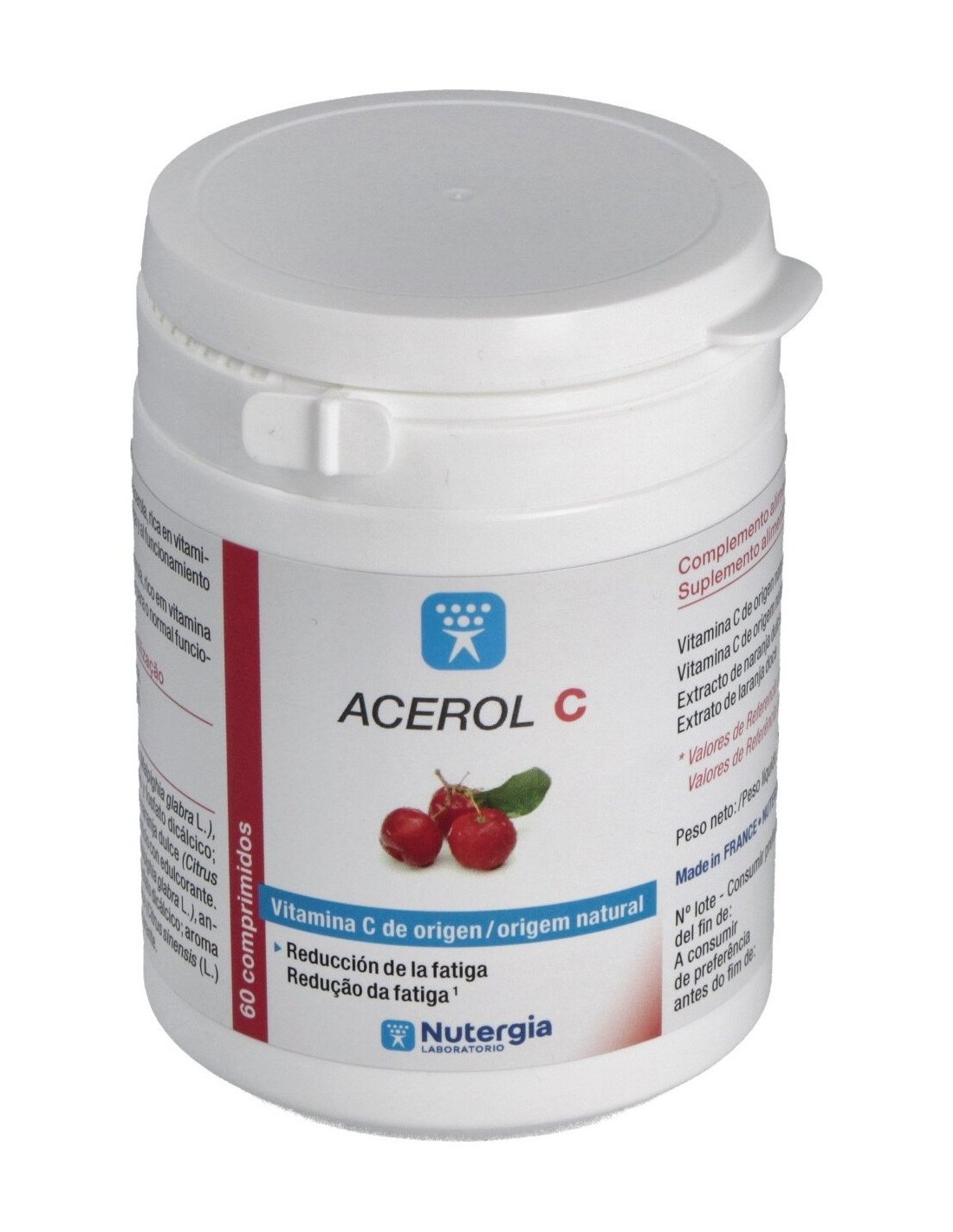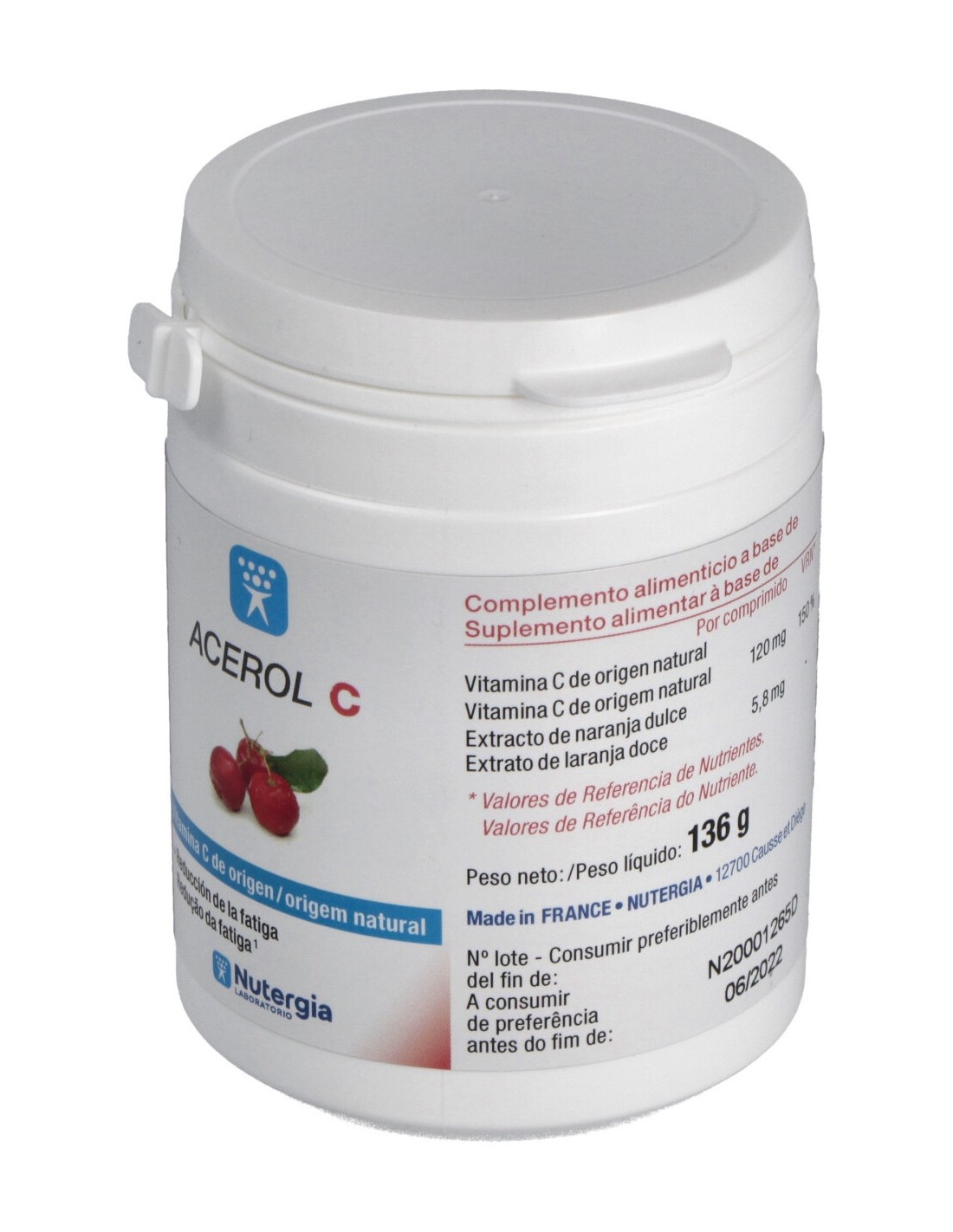 Comprimidos elaborados a base de extracto de acerola, extracto de limón y magnesio que retrasan la aparición de los signos de la fatiga y el cansancio, tanto físico como mental. Es una fuente rica en vitamina C, que favorece la absorción de hierro por el organismo y participa en el metabolismo energético.