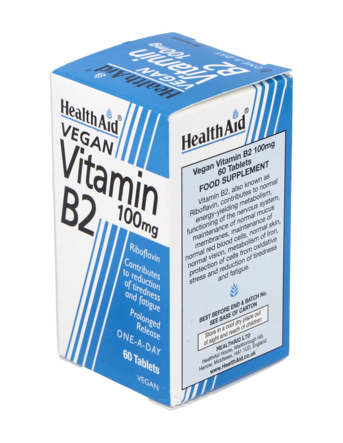 La vitamina B2 (riboflavina) contribuye al mantenimiento de las mucosas, de los glóbulos rojos, de la piel y de la visión en condiciones normales, a la protección de las células frente al daño oxidativo, a disminuir el cansancio y la fatiga, al metabolismo energético normal y al funcionamiento normal del sistema nervioso. Producto apto para vegetarianos y veganos.