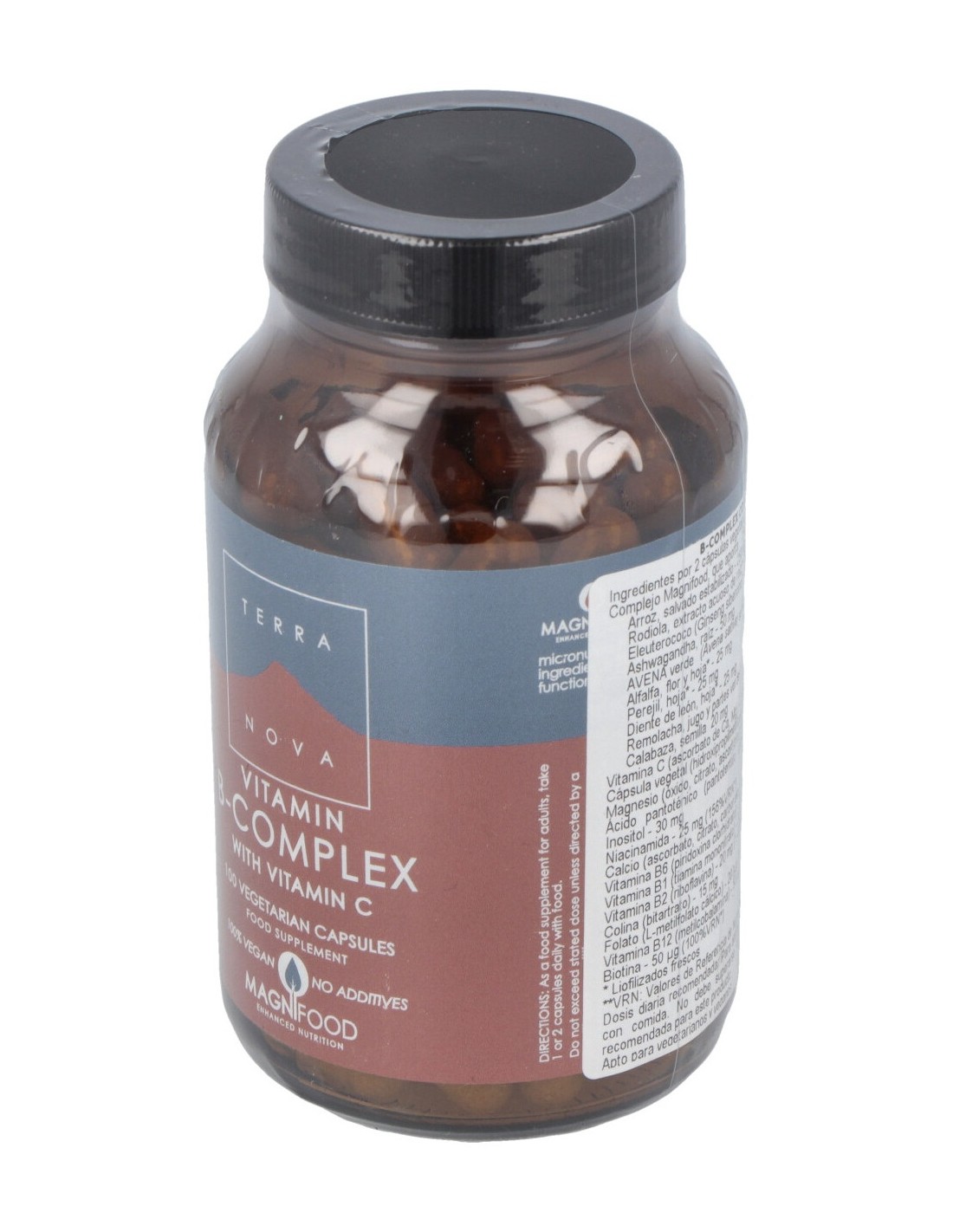 Complemento alimenticio a base de vitaminas del grupo B, vitamina C, calcio, magnesio y plantas del Complejo Magnifood. Contribuye al funcionamiento normal del sistema nervioso, entre otras muchas propiedades. Apto para vegetarianos y veganos.