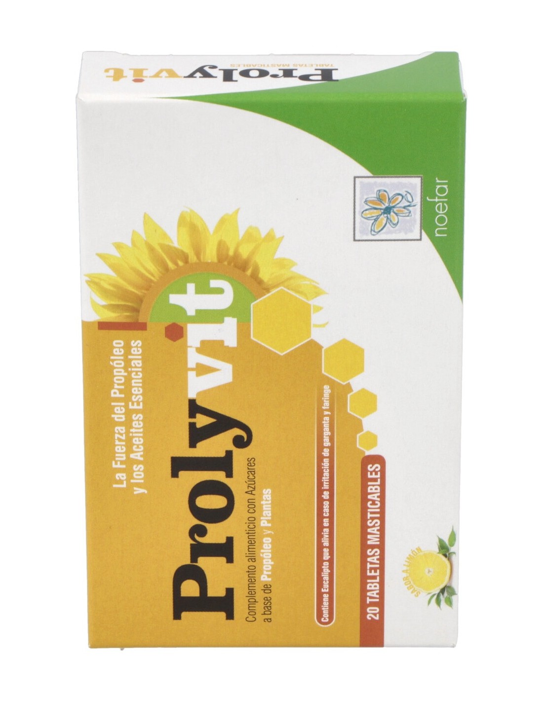 Complemento alimenticio a base de plantas con extracto seco de Propóleo, altamente titulado en flavonoides, con la adición de Acerola y aceites esenciales de Limón, Tomillo vulgar y Eucalipto.