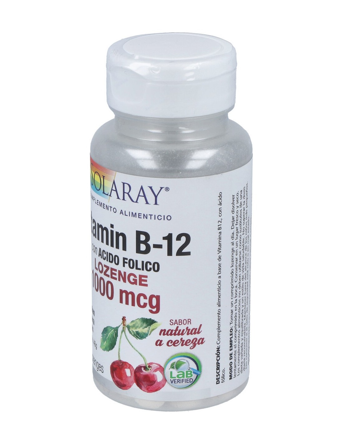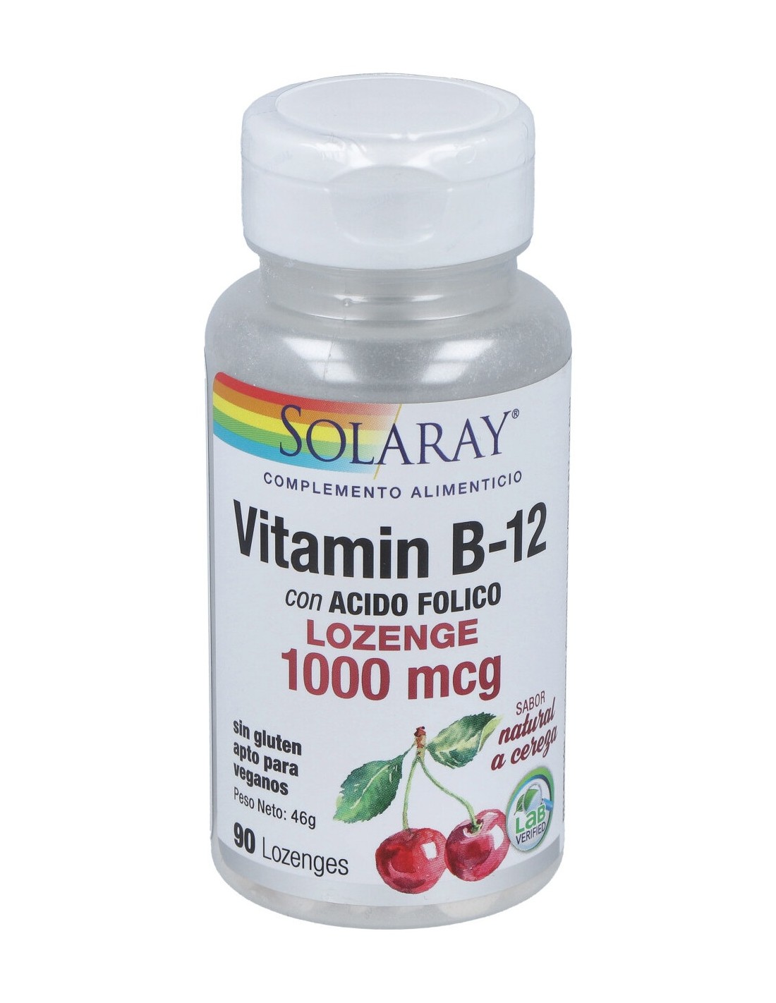 La vitamina B-12. Sorbitol. Condimento natural de cereza. Estearato de magnesio. Sílice y celulosa.