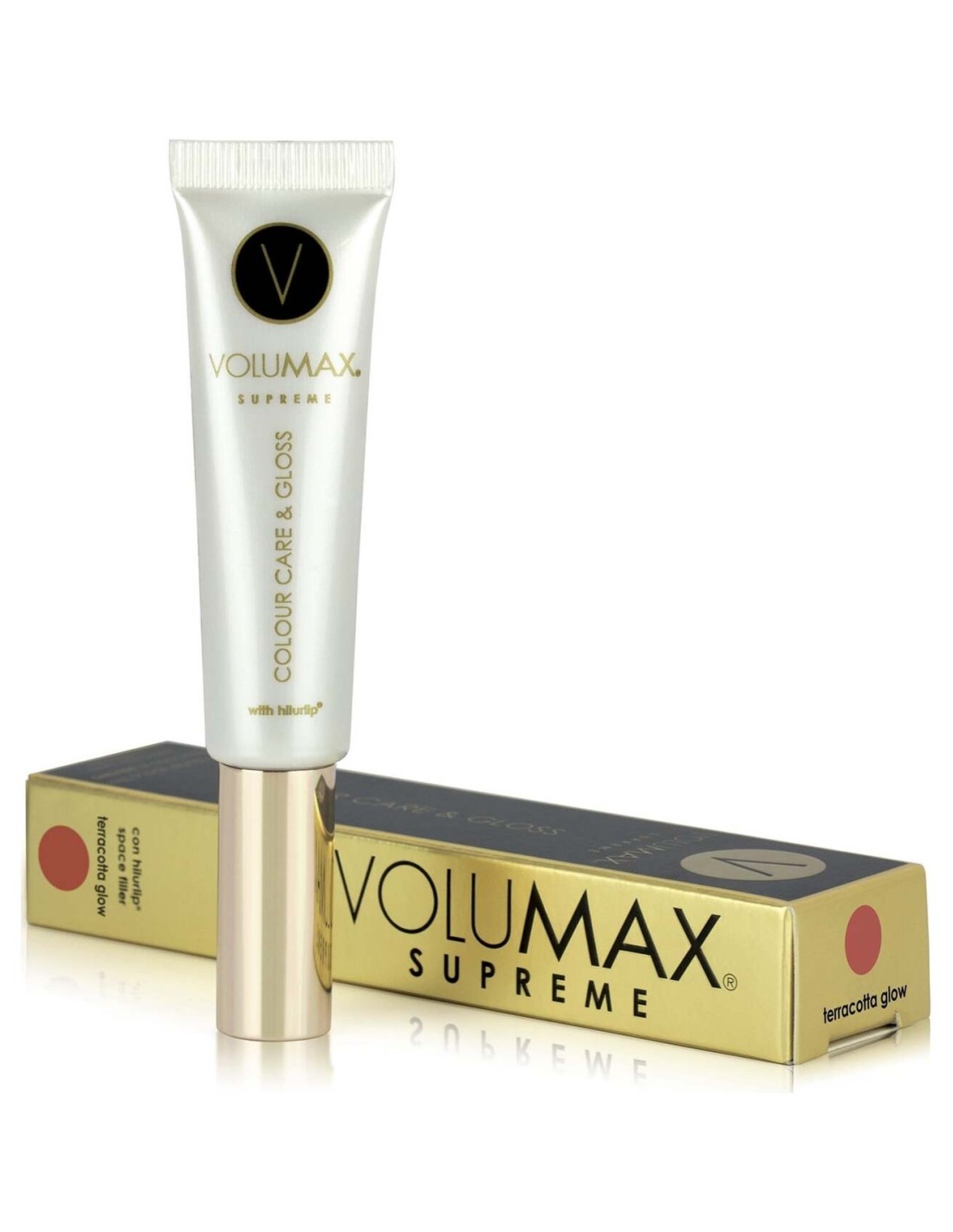 Volumax® Supreme Colour Care & Gloss terracota glow 15 ml es un brillo labial que nutre, hidrata y suaviza los labios con la ayuda de mantecas y aceites botánicos de karité, mango, jojoba y mimosa. Contribuye al cuidado antiedad y a evitar la pérdida de elasticidad. Tras su aplicación, los labios ganan volumen: su fórmula contiene GHK, el tripéptido que estimula la producción nautral de colágeno, ácido hialurónico y elastina, minimizando las líneas verticales y e hidratando la zona. Esto, unido a los pigmentos puros ultracolor 3D que distribuyen la luz y corrigen las irregularidades, ayudarán a tener unos labios densos, suaves y de aspecto joven.